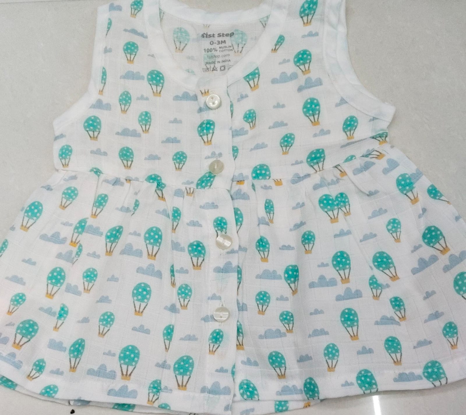 1st Step 100% Soft Muslin Cotton Snap Button Baby Frock - Pack Of 4 - 0-3 Months