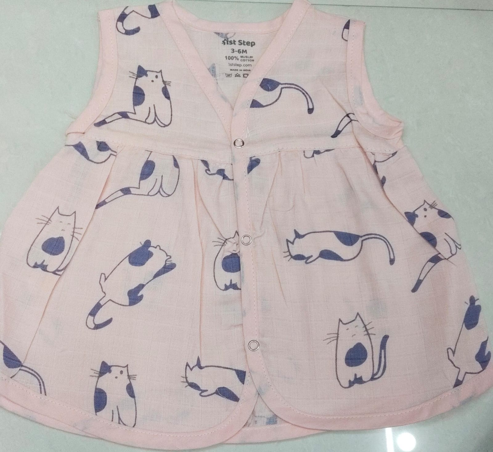 1st Step 100% Soft Muslin Cotton Snap Button Baby Frock - Pack Of 4 - 3-6 Months