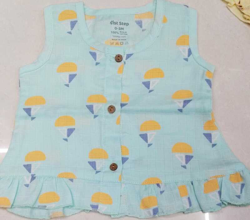 1st Step Muslin Colour Frock with Frill-0-3 M