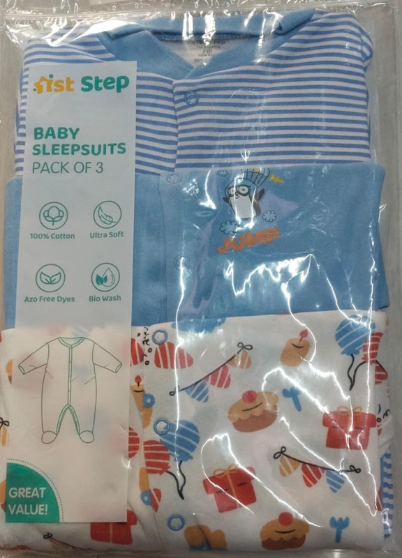 1st Step Baby Sleepsuits {pack of 3 } NB